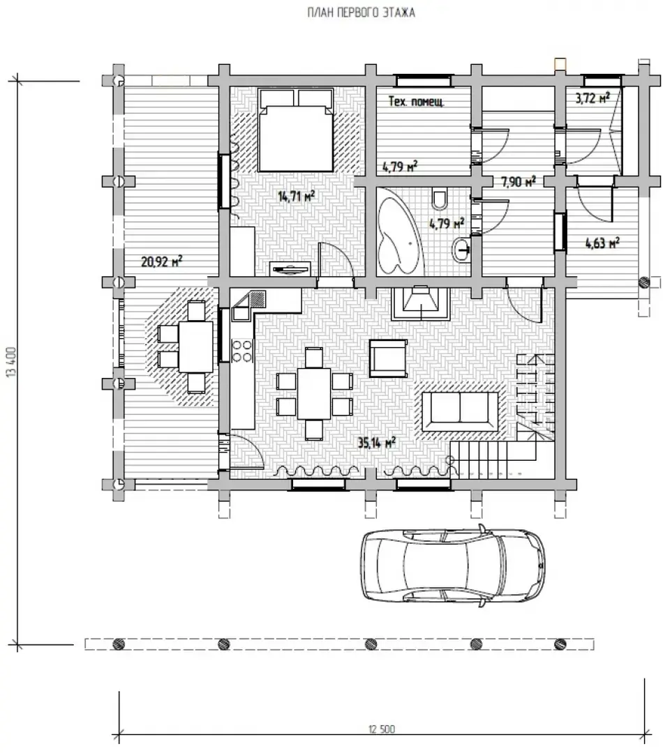 12х13 184 м.кв. Первый этап фундамент, сруб, крыша.