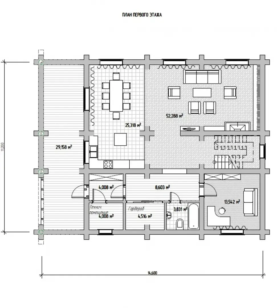 15х11 251 м.кв. Первый этап фундамент, сруб, крыша.