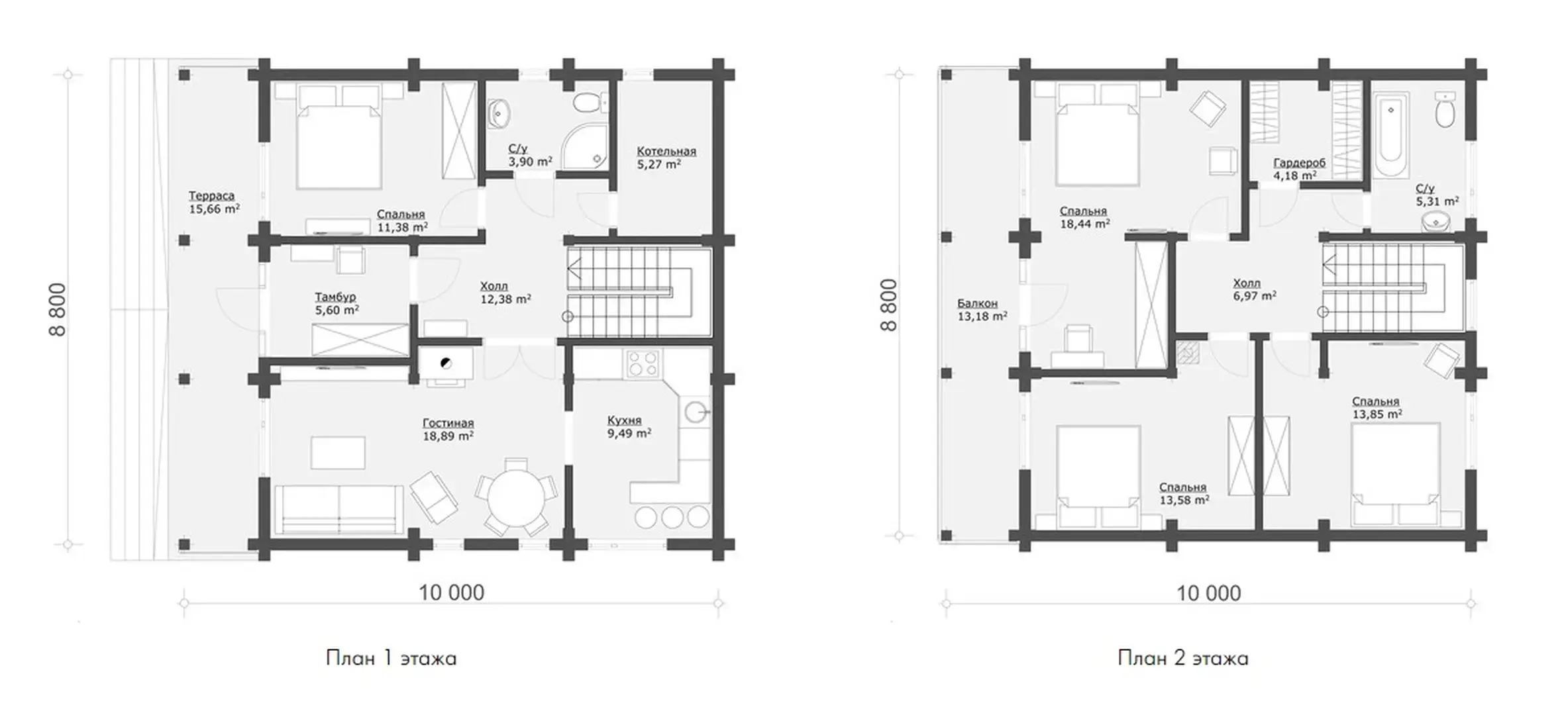 10х9 158 м.кв. Первый этап фундамент, сруб, крыша. Материал Цена Брус профилированный естественной влажности 2 400 000 руб. Брус профилированный сухой монолит 3 600 000 руб. Брус профилированный клеёный 5 580 000 руб.