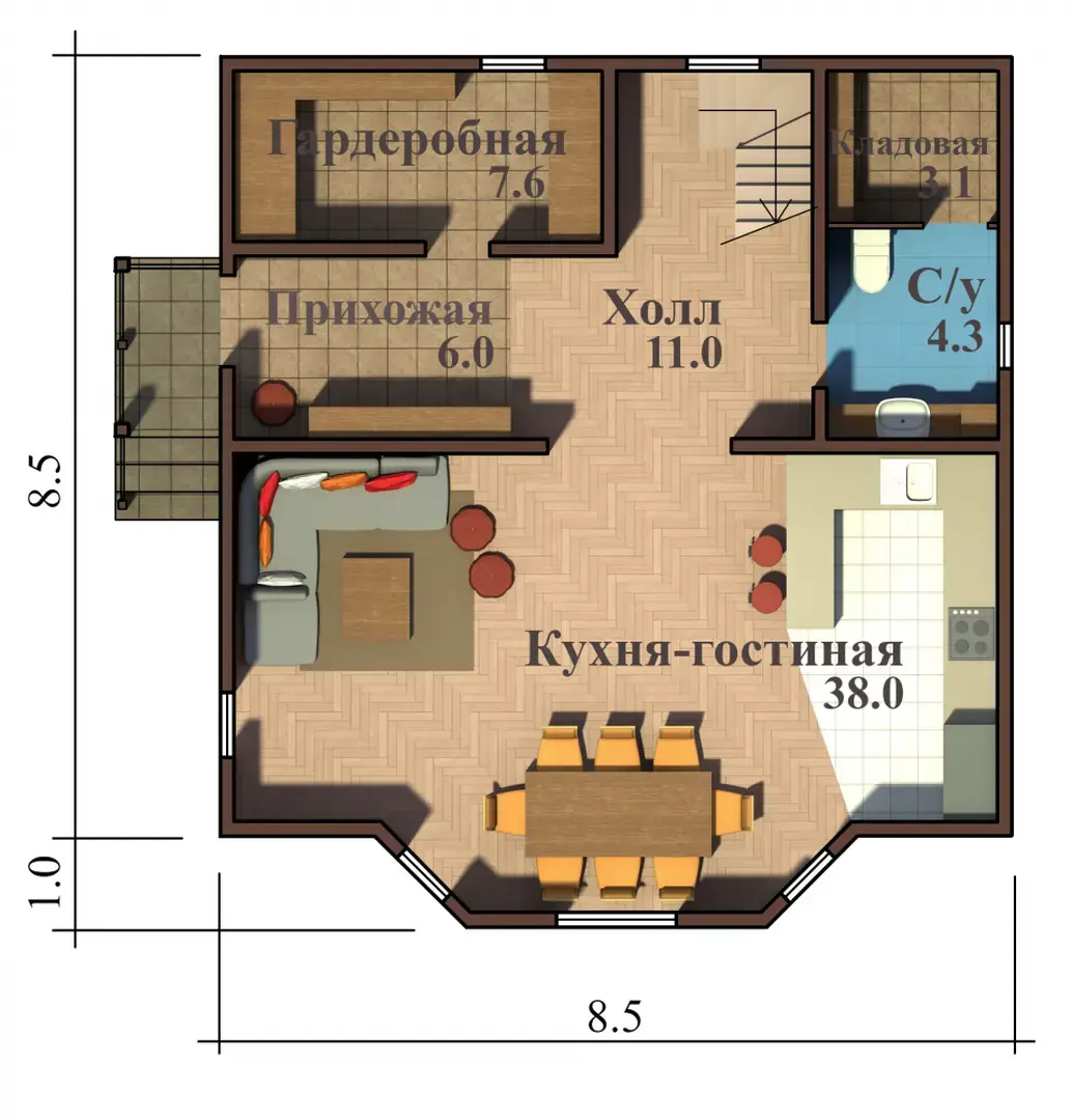 8х8 140 м.кв. Первый этап фундамент, сруб, крыша. Материал Цена Брус профилированный естественной влажности 2 187 000 руб. Брус профилированный сухой монолит 2 912 000 руб. Брус профилированный клеёный 3 988 000 руб.