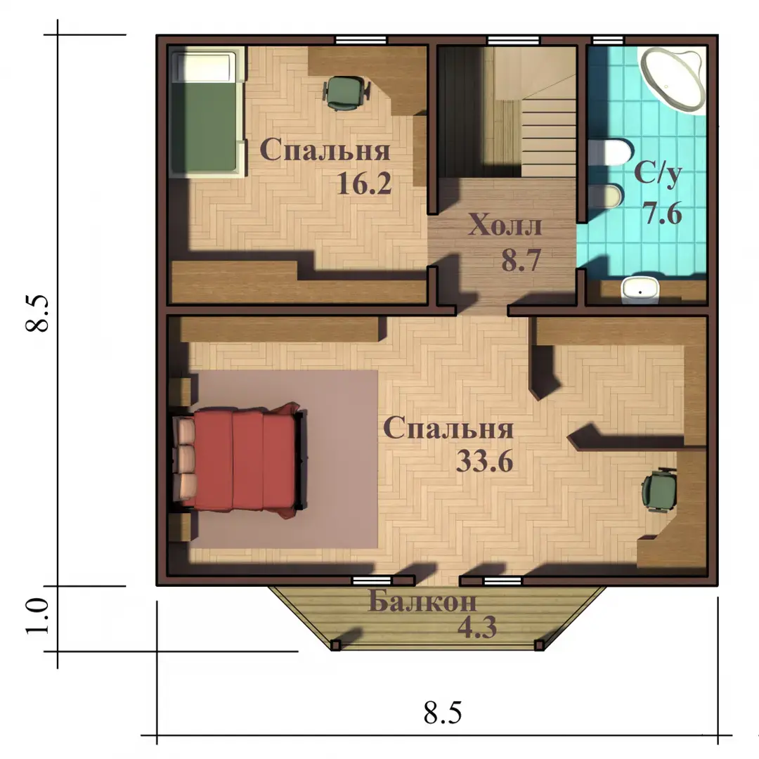 ДОМ ИЗ БРУСА ДВУХЭТАЖНЫЙ (08)