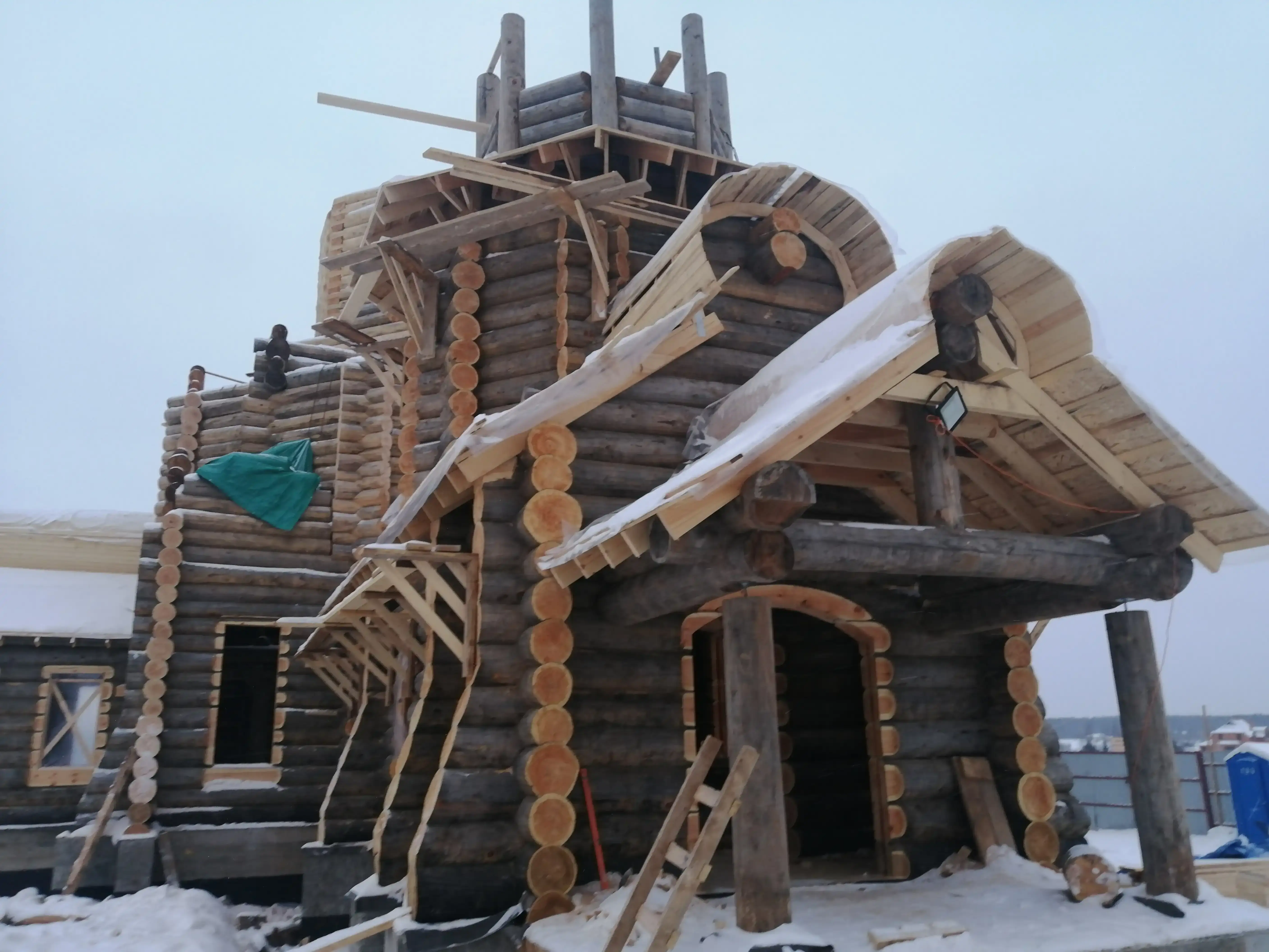 1200 М3: КРУГЛОГО ЛЕСА ТВЕРСКОЙ ОБЛАСТИ ИСПОЛЬЗОВАЛИ ДЛЯ СТРОИТЕЛЬСТВА 42 МЕТРА: ВЫСОТА ХРАМА ВМЕСТЕ С КРЕСТОМ 1,5 ГОДА: 1 БРИДАГА ЗАНИМАЛАСЬ СТРОИТЕЛЬСТВОМ ХРАМА