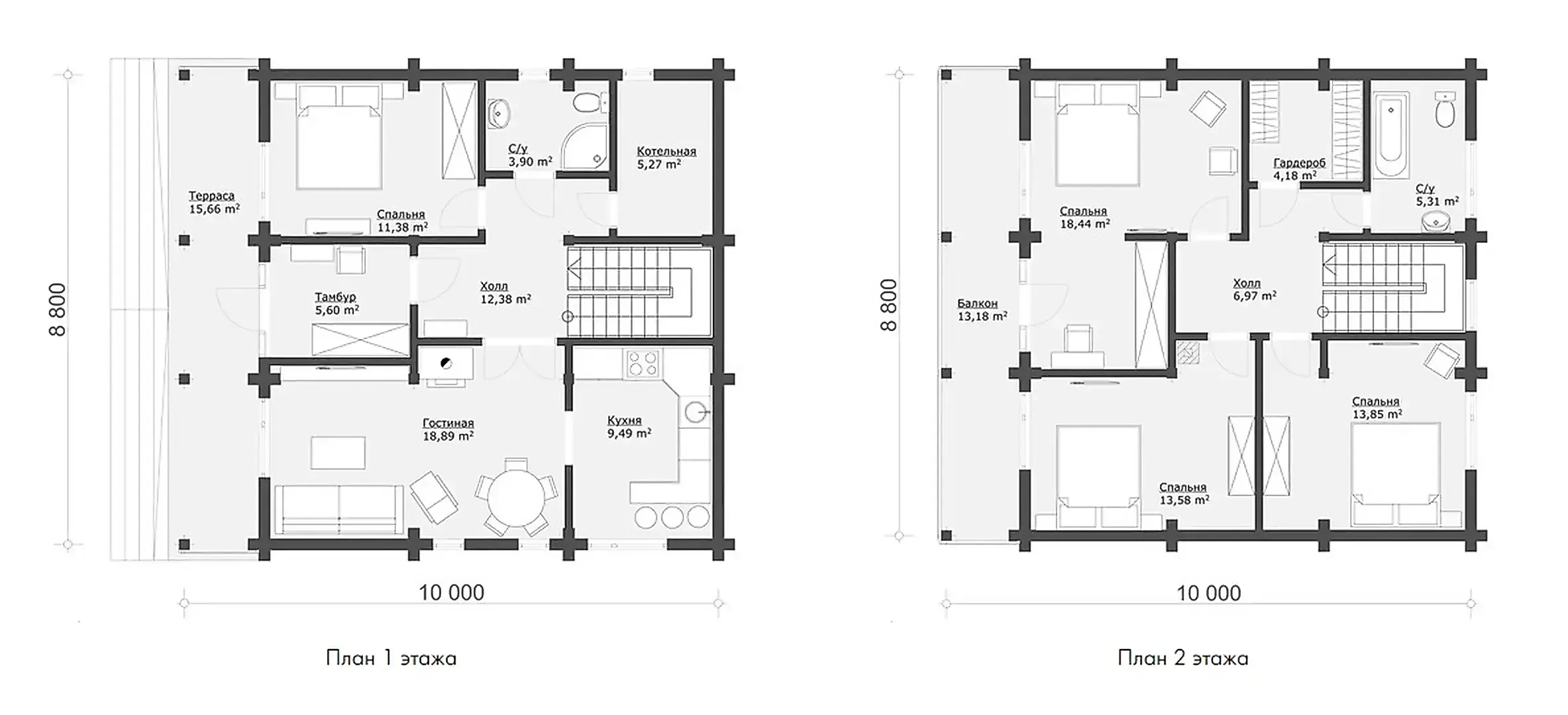 10х9 158 м.кв. Первый этап фундамент, сруб, крыша. Материал Цена Брус профилированный естественной влажности 2 400 000 руб. Брус профилированный сухой монолит 3 600 000 руб. Брус профилированный клеёный 5 580 000 руб.